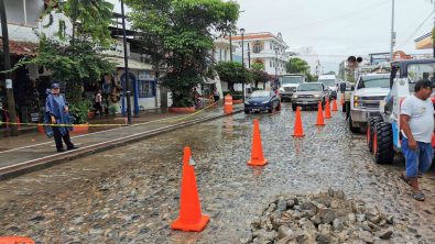 El Sistema de Agua Potable, Drenaje y Alcantarillado (SEAPAL) de Puerto Vallarta, realiza la reparación de una tubería perteneciente a un subcolector de aguas residuales en la Avenida México entre Panamá y Honduras, colonia 5 de Diciembre.