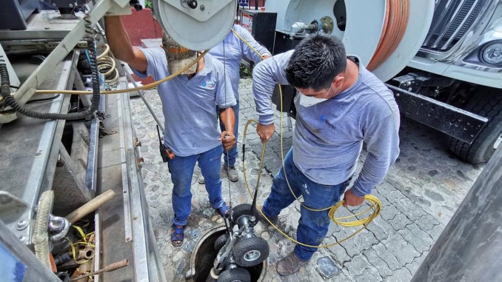 Agregó que durante la mañana de este jueves 30 de julio, se detuvo la operación de los cuatro cárcamos de la zona sur del municipio para evitar en lo posible escurrimientos y se procedió a evaluar este punto del colector, en el que se determinó con la ayuda del equipo de videoinspección, que el problema se suscitó en la conexión del tubo con el pozo de visita ubicado en dicho cruce.