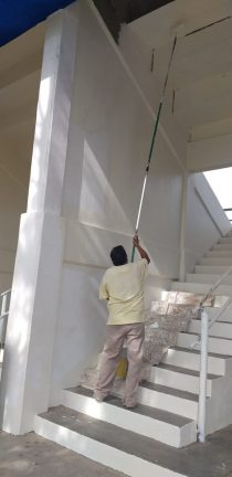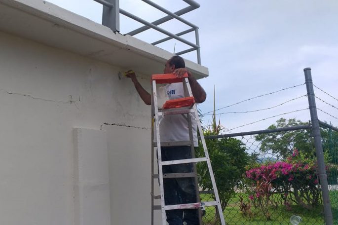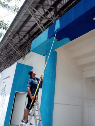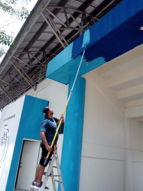 Por su parte, una cuadrilla de pintores trabajaron en el embellecimiento y protección de la herrería de la zona de gradas y en la fachada principal de acceso a la Unidad Deportiva de San José del Valle; en los baños de este inmueble también se aplicó pintura y mantenimiento y se rehabilitaron dos pasos peatonales que conducen hacia la pista de tartán.