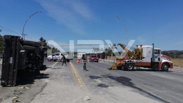 Lo anterior luego de que se volcara cerca del crucero que lleva a la caseta de la autopista Tepic San Blas