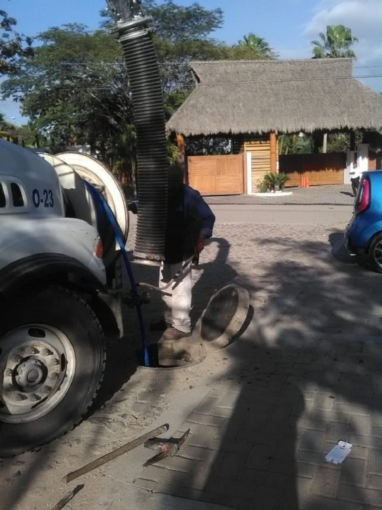 El pasado lunes 18 de febrero, en La Cruz de Huanacaxtle, se atendió un reporte de fuga de aguas negras en las calles de Tiburón esquina con Atún, en las inmediaciones del Condominio Punta Pelicanos, lugar de donde procedía la mayor cantidad de aguas residuales.
