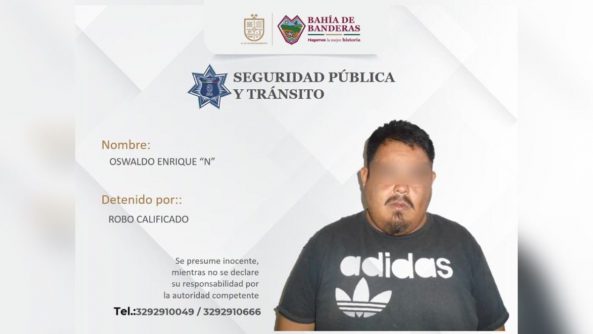 Otro detenido dijo llamarse Oswaldo Enrique, de 28 años de edad, quien manifestó ser originario de Ahuacatlán y vecino de San Juan de Abajo, en el municipio de Bahía de Banderas.