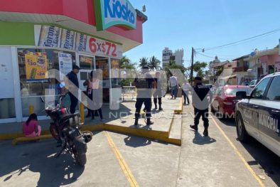 Los hechos ocurrieron este jueves por la tarde, en la lateral de norte a sur, del Boulevard Riviera Nayarit, cruce con Vicente Guerrero y Héroe de Nacozari, en el poblado de Bucerías, donde reportaron a las autoridades policíacas que dos sujetos habían llegado a la tienda Kiosko ubicada frente a Telmex, de donde se llevaron dinero en efectivo, luego de amenazar a una de las empleadas, por lo que solicitaban la presencia policial en el lugar.