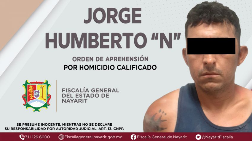 La Fiscalía General del Estado informó que la Agencia de Investigación Criminal ha llevado a cabo una orden de aprehensión en el municipio de Bahía de Banderas contra Jorge Humberto «N» por su presunta participación en un caso de homicidio calificado.