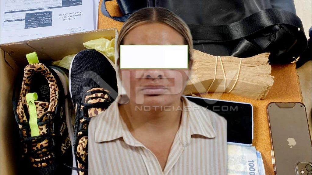 La detenida fue identificada como Karen Cristina “N” “N”, de 34 años de edad, originaria de la Ciudad de México, quien fue sorprendida en posesión de diferentes cartones que simulaban billetes, dinero en efectivo y dos teléfonos celulares.