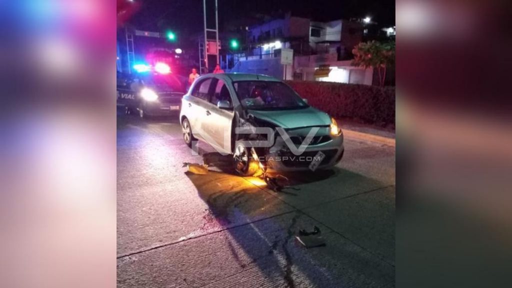 Fuerte accidente se registró sobre el boulevard Riviera Nayarit frente a la parada de los taxis de Bucerías, en donde fue atropellado joven motociclista, el cual imprudentemente cruzó la avenida cuando el semáforo estaba en rojo, lo que provocó que fuera embestido de manera aparatosa.