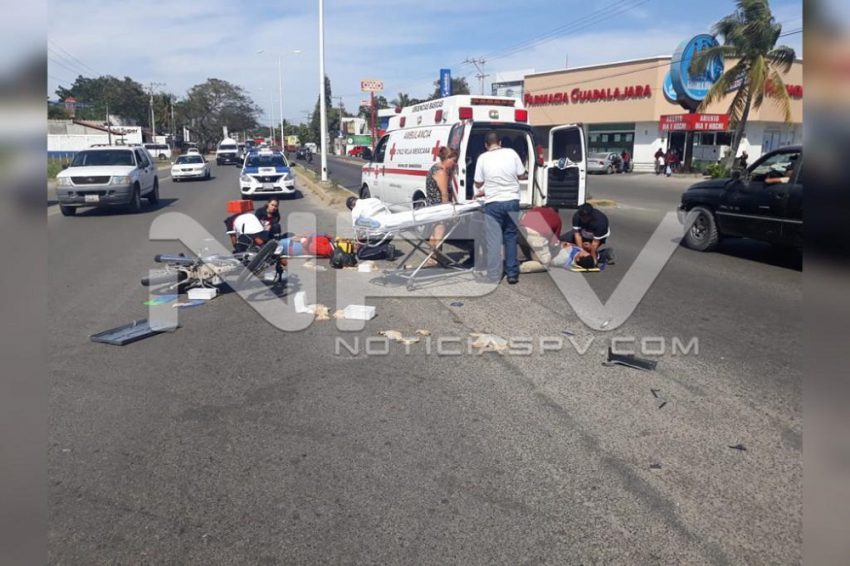 Los hechos ocurrieron este miércoles por la tarde, sobre la avenida Emilio M. González, a la altura de donde se ubica el centro comercial Las Palmas, en la localidad de San Vicente, Nayarit, donde reportaban al módulo de emergencias del 911, que se había registrado un fuerte accidente entre dos vehículos, informando el reportante que ahí se encontraban dos personas lesionadas que estaban tiradas sobre la carpeta asfáltica, por lo que solicitaban la presencia de una ambulancia.