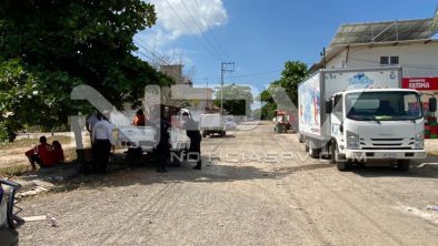 Los agentes viales fueron enterados que minutos antes la camioneta de Puritronic, había atropellado al repartidor de hielo, al momento que este estaba bajando las bolsas para entregarlas en una tienda, quien fue aplastado contra el pesado vehículo de Polo Sur, donde quedó tirado y lesionado, desconociéndose hasta el momento su estado de salud.