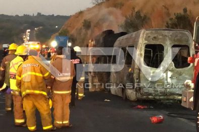 “Se registra el choque por alcance de una camioneta tipo van y un camión de carga con toneladas de madera, al momento del impacto la van se incendia, se contabilizan 5 lesionados leves, 5 regulares que fueron llevados al hospital regional de Tepatitlán y hay dos graves, estos últimos ya fueron trasladados vía aérea por SAMU, entre los heridos había varios menores de edad”, informó Protección Civil del Estado.