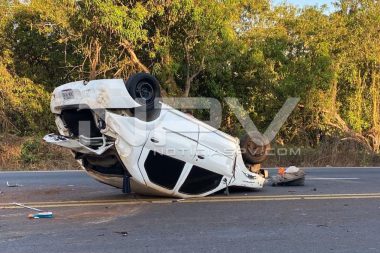 Un taxi se estrelló en el costado de la unidad oficial, generando la volcadura. No…