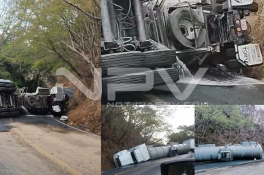 Se volcó una pipa con turbosina y cierran la carretera Tepic-Vallarta