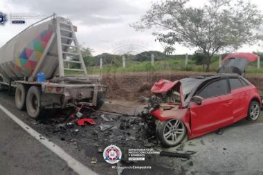 Dos mujeres y un hombre que viajaban en un Audi, se estrellaron con un trailer…