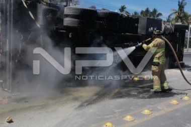 Lo anterior luego de que se volcara cerca del crucero que lleva a la caseta…