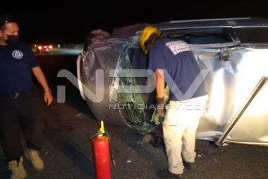Un auto Cross Fox quedó volcado en la carretera y paramédicos atendieron a dos personas…