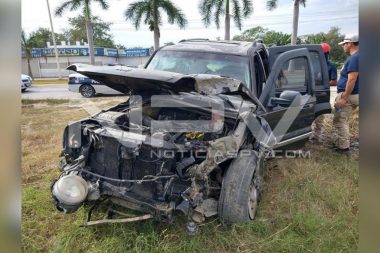 Destrozada del frente quedó una Jeep que era conducida por una mujer vecina de Terralta…