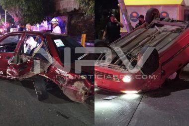 Un Matiz chocó con un taxi y luego se dio la aparatosa volcadura Tepic.-…