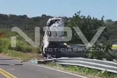 Destrozada quedó el tracto camión fuera de la carretera y la pipa tiene fuga *Se…