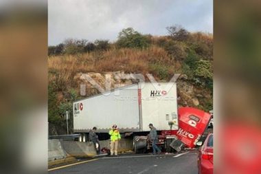 Camión de carga por poco vuelca en el primer “Paso del Guayabo”