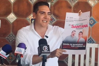 El candidato de Morena a la presidencia municipal de Bahía de Banderas, Héctor Santana, presenta…