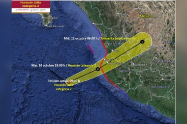 «Lidia” se convierte en huracán categoría 2 y provocará intensas lluvias, vientos fuertes y oleaje…