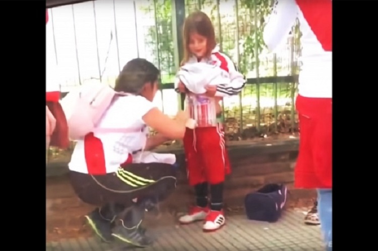 *Una aficionada de River Plate oculta pirotecnia en el torso de una niña y es captada en video que…