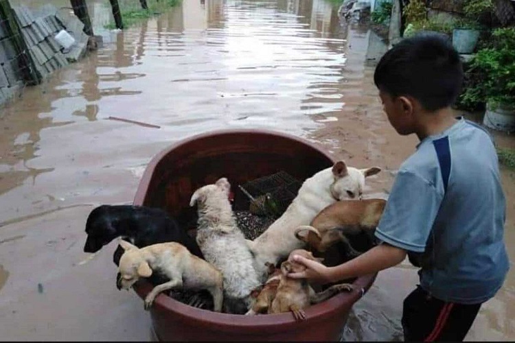 *Jostyn Dilan salvó a siete perros, un cotorro y un gallo, que viajaron dentro de la tina, empujada por…