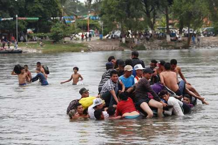 Cansados de esperar, más de mil hondureños cruzaron ayer el Suchiate
