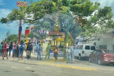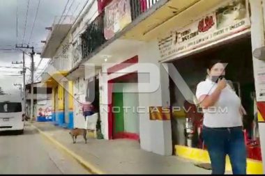 Riesgo de Covid-19 afuera de OXXO en El Tigre de Nuevo Vallarta