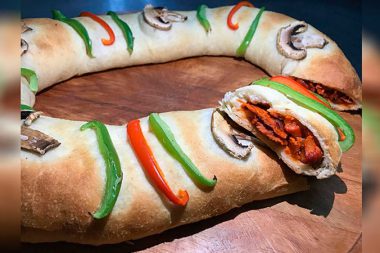 En Yucatán crean rosca de Reyes, que también es pizza, rellena de pastor