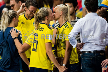 La seleccionada de Suecia, Magdalena Eriksson, celebró con su pareja, la danesa Pernille Harder,…