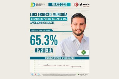 Según la encuesta de Demoscopia Digital, el alcalde de Puerto Vallarta obtiene un 65.3% de…