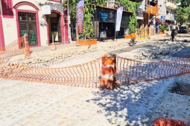 Actualmente reponen el empedrado entre las calles Constitución e Ignacio L. Vallarta Para SEAPAL…