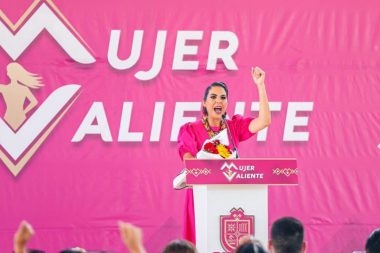 La presidenta municipal de Bahía de Banderas, Mirtha Villalvazo, hace entrega de las tarjetas Mujer…