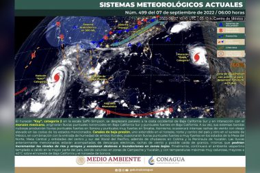 Prevalecerán las lluvias con acumulados torrenciales en Baja California Sur, y muy fuertes en Durango,…