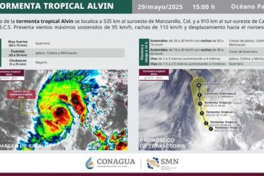 La tormenta tropical Alvin provoca lluvias fuertes, vientos intensos y oleaje elevado en el occidente…