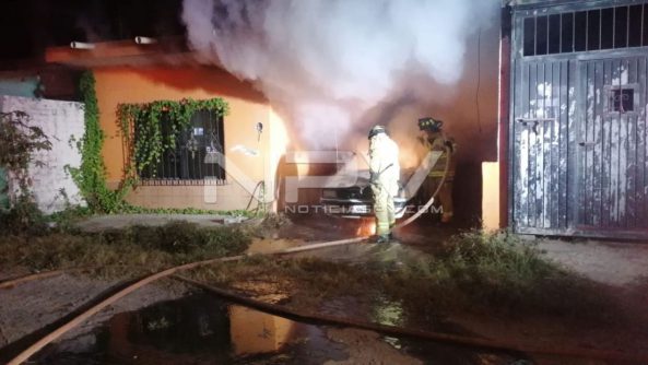 Personal de Protección Ciudadana y Bomberos atendió el reporte y sofocó el incendio *El auto quedó en perdida total