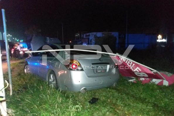 Fueron los agentes de la Policía y de Tránsito Municipal, quienes arribaron al lugar y luego de verificar el accidente informan que se trata de un solo vehículo involucrado al parecer por salida de camino, siendo éste un automovil de la marca Nissan, tipo Altima, el cual se encuentra dentro de un lote baldio, con daños considerables, el cual además causó destrozos en el cerco de alambre publicitario al momento de que el conductor identificado con el nombre de José Ramón» N», con domicilio en el fraccionamiento Alta Vela, perdio el control y fue a parar hasta ese lugar luego de salirse de la carpeta asfáltica.