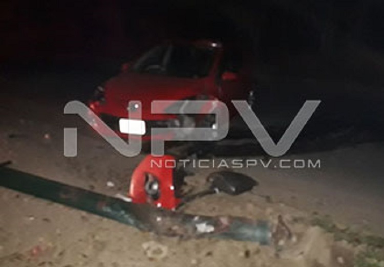 Los hechos ocurrieron a eso de las 04:00 horas de éste sabado, en la avenida de Ingreso al fraccionamiento Alta Vela, en San Clemente de Lima, en dónde reportaban que un vehiculo habia chocado contra un poste, sin informar si habia personas lesionadas, ya que en el reporte sólo decían que se trataba de un auto compacto que a simple vista se le apreciaban cuantiosos daños materiales.