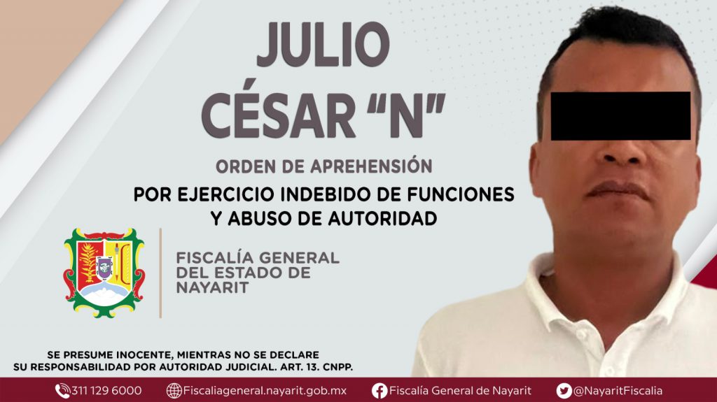 La Fiscalía General de Nayarit confirma la detención de Julio César «N» por ejercicio indebido de funciones y abuso de autoridad en perjuicio de la Universidad Tecnológica de Bahía de Banderas. Elementos de la Agencia de Investigación Criminal de Nayarit ejecutaron una orden de aprehensión en el municipio de Bahía de Banderas.