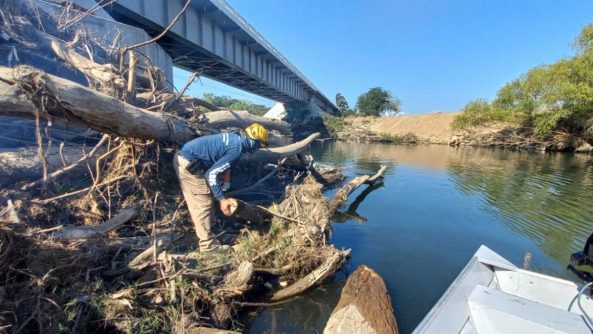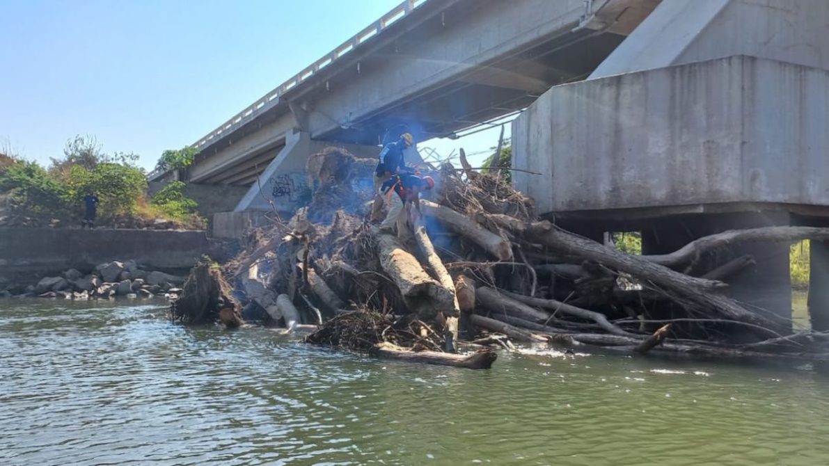 Comunicado. – La Secretaría de Seguridad y Protección Ciudadana a través de Protección Ciudadana y Bomberos en coordinación con autoridades de Protección Civil de Bahía de Banderas, informó que llevan a cabo trabajos de limpieza y remoción de troncos que quedaron atorados en los pilares de los puentes del río Ameca, en los límites de Nayarit y Jalisco.