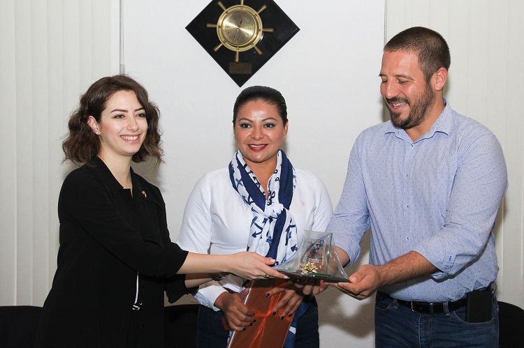 El secretario general del ayuntamiento en compañía de la regidora Guadalupe Guerrero Carvajal, presidenta de la Comisión Edilicia de Turismo y Desarrollo Económico, y el titular de Turismo Municipal, Ramón González Lomelí, hicieron entrega de algunos presentes a los representantes consulares, quienes a su vez, entregaron unos regalos a los funcionarios vallartenses.