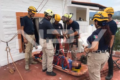 Al arribar las unidades PC-103 y PC-27, se procedió a realizar la inmovilización de la persona para posterior proceder con el descenso de la misma por el techo con técnicas de rescate vertical, asegurándola y abordándola en la unidad PC-09 para su posterior traslado a la Unidad de Medicina Familiar #19 en Mezcales, en donde quedó internado para su atención médica.