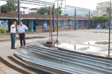 Avanzan trabajos de techado de patios cívicos en escuelas
