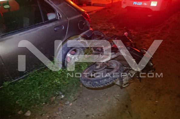De cómo resultó lesionado este joven vecino de San Vicente, no hubo muchos detalles, solo comentaron algunos testigos, que el motociclista había caído a un registro que está abierto y de ahí fue a estrellarse contra el auto que ya tiene mucho tiempo estacionado y abandonado, donde quedó tirado con lesiones delicadas que ponían en peligro su integridad física, pues se presume que traía varios huesos rotos.