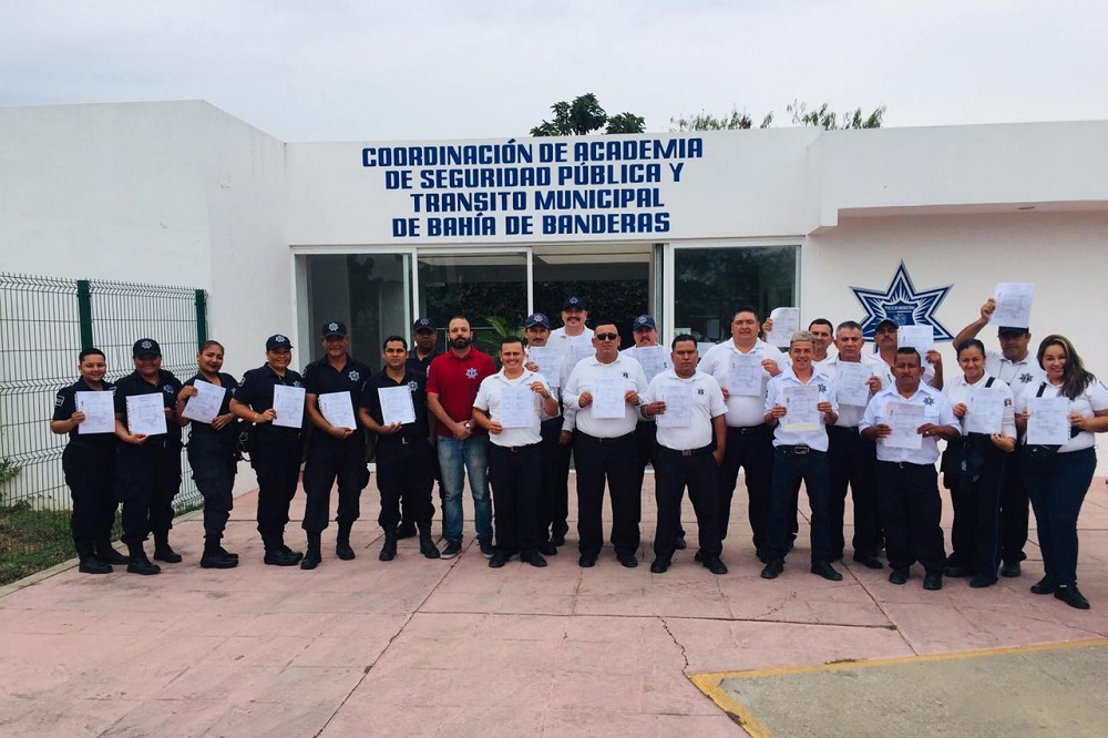 Con el objetivo de contar con policías mejor preparados y brindar mayores oportunidades de desarrollo, el Gobierno Municipal de Bahía de Banderas, que encabeza el doctor Jaime Cuevas Tello, cumplió el compromiso de que todos los elementos de Seguridad Pública y Tránsito cuenten con la educación básica medio superior.