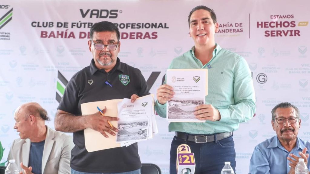 El presidente municipal de Bahía de Banderas, Héctor Javier Santana García, encabezó la firma del convenio de colaboración con el Club Vads, equipo de la Tercera División Profesional de la Federación Mexicana de Fútbol, marcando un hecho sin precedentes para el impulso deportivo en el municipio.