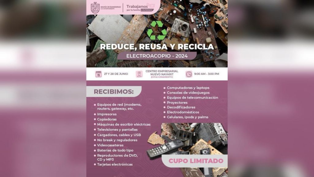 El próximo 27 y 28 de junio, en Nuevo Nayarit, podrás deshacerte de tus equipos electrónicos con el lema ‘Reducir, reusar y reciclar’.