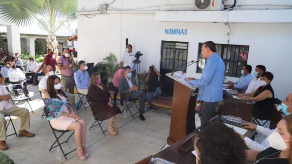 Acompañado por el pleno de los regidores y Sindico, y teniendo como invitados especiales a su esposa, la LTS Ana Esperanza Berumen de Cuevas, presidenta del sistema DIF municipal; el alcalde de Puerto Vallarta, Arturo Dávalos Peña y su esposa Candelaria Tovar, así como representantes empresariales y los ex alcaldes Cresenciano Flores Alvarado y Juan Ramón Cervantes, el alcalde bahiabanderense destacó la trayectoria de crecimiento del municipio con base en remontar grandes retos, como el que actualmente vivimos por la Pandemia, y de los cuales, una y otra vez, hemos salido avante, “muy pronto, pasamos de ser el Municipio más joven, al corazón económico de nuestro Estado, lo digo con emoción, somos el impulso de Nayarit y un motor importante para el turismo en México”.