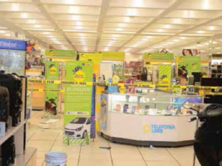 Un grupo de asaltantes usó mazos para romper vitrinas con celulares
