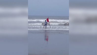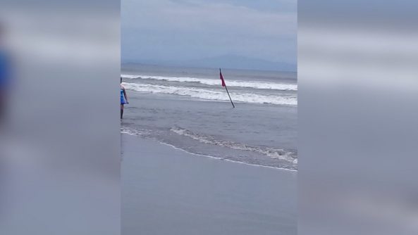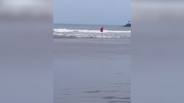 A partir de la tarde de este sábado las diferentes playas del municipio tendrán bandera ROJA, queda totalmente prohibido el baño en la zona, ya que pueden presentarse pozos y canales de succión producidos por la rotura de los bancos de arena.